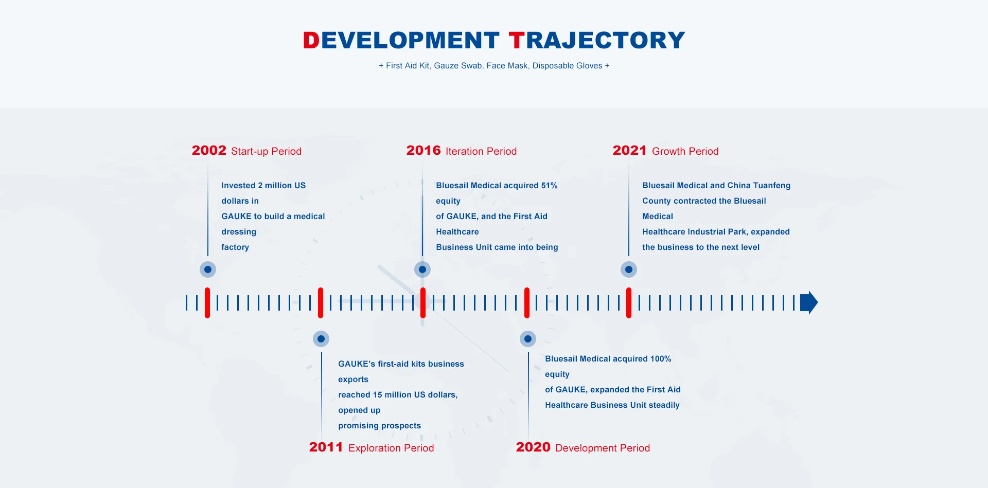 Bluesail Medical Co., Ltd. (“Bluesail Medical”) was founded in 2002 and is a leading medical device enterprise with a complete layout of low- and medium-value consumables and high value consumables. The company’s four major sections are: i) Healthcare Protective Business Unit with medical gloves as the core and a comprehensive layout of medical and epidemic prevention products; ii) Cardiovascular Business Unit with cardiovascular stents as the core and a comprehensive layout of interventional devices; iii) Surgical Business Unit with staplers and ultrasonic scalpel as the key products and a comprehensive layout of minimally invasive surgical equipment; and iv) Nursing Business Unit with first-aid kits as the core and a comprehensive layout of emergency care supplies.